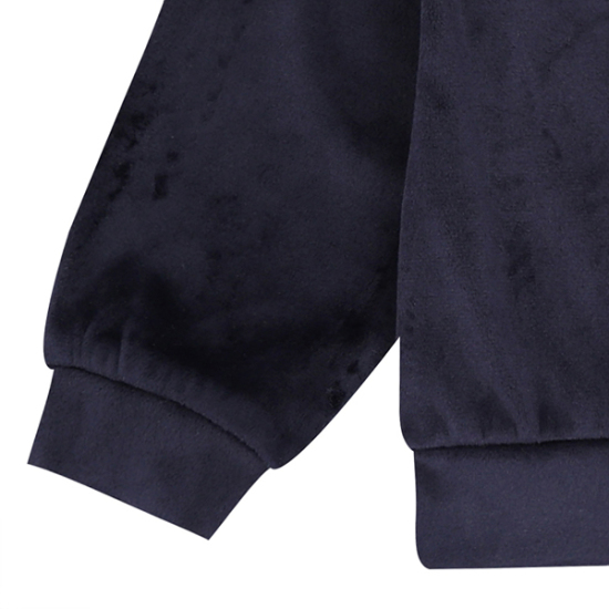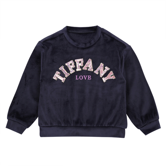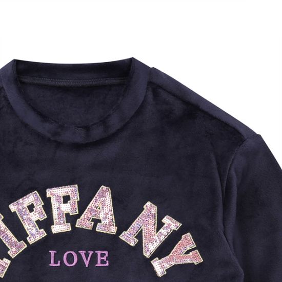 상세설명-터치감이 부드러운 벨벳 원단으로 만들어진 맨투맨 입니다. 따뜻한 기모가 있어서 추운 겨울에도 입기 좋은 아이템입니다. 반짝이는 스팽글 자수 로고포인트가 캐주얼하면서도 러블리한 느낌을 줍니다. 하의(T36KKP010)와 함께 코디 가능합니다.