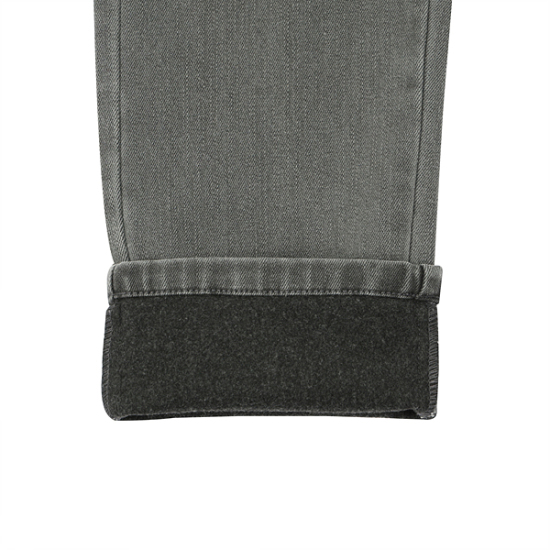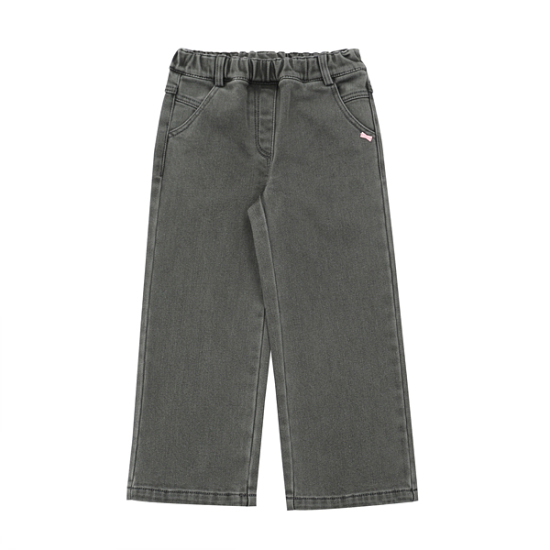 그레이 기모 소재 데님 팬츠로 슬림한 일자 라인 팬츠입니다. 핑크 금속 리본 장식으로 깔끔하게 포인트를 준 데님팬츠입니다.