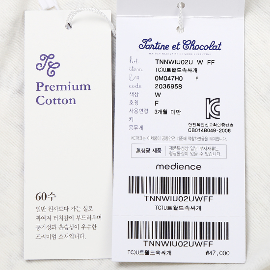 (롯데백화점)트왈드속싸개(신생아속싸개) TNNWIU02UW