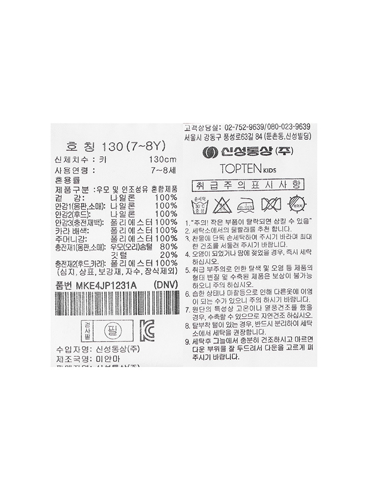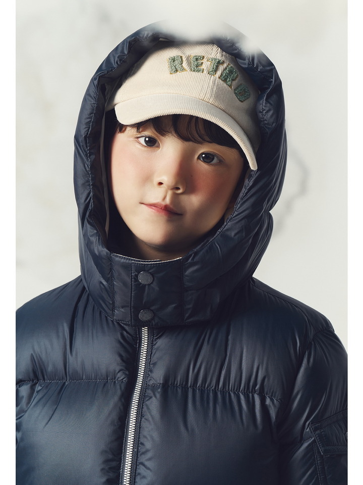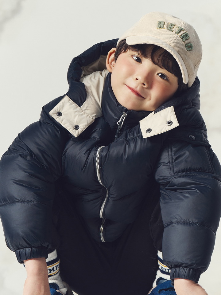 3. 덕다운 80/20 충전재 사용하여 보온성 강화 남아 전용 핏으로 엉덩이 중간까지 오는 기장감으로 활동성이 편하고 후드가 있어 보온성이 좋음