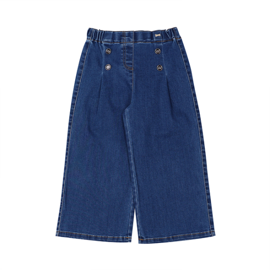 상품설명-제물넘김 허리에 주름 장식으로 포인트를 살린 일자 데님 팬츠입니다. 앞 주름 장식에 단추로 포인트를 주어 캔투맨과 코디하여 편하게 연출 가능합니다.