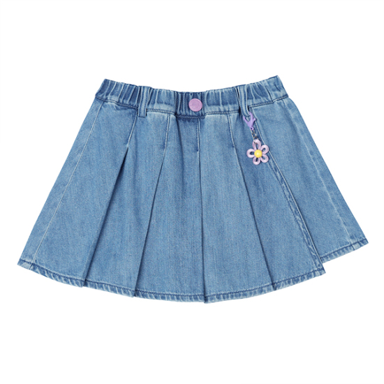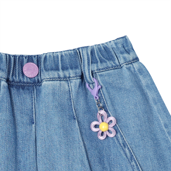 상품설명-블루톤의 주름큐롯팬츠로 통밴드 디테일이라 입고벗기 편하며, 벨트고리에 귀여운 꽃장식이 같이 구성되어있습니다.