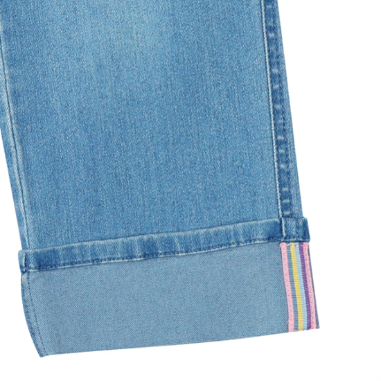 상품설명-스판력 좋은 데님팬츠로 롤업된 디자인이 한층 유니크함을 더해주는 팬츠로 어디에나 코디가능한 아이템입니다.