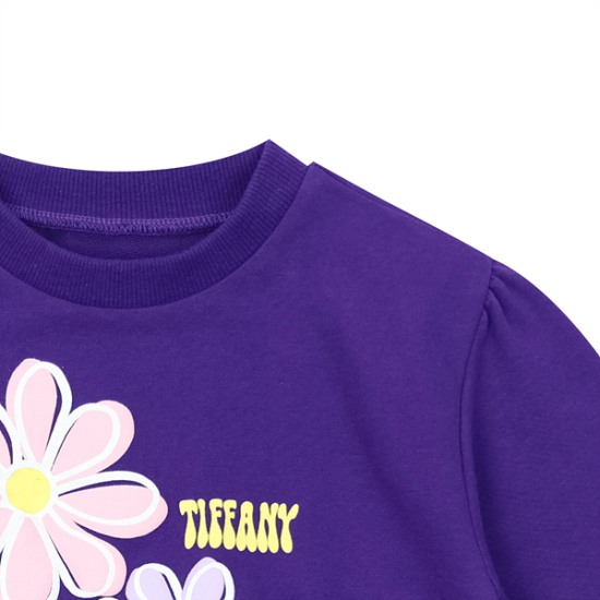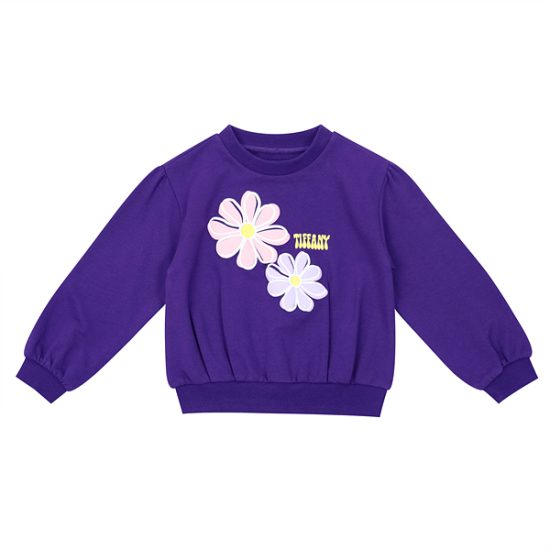 상세설명-화사하고 귀여운 발포 꽃나염이 포인트인아이템으로 어디에나 코디가능한 보라맨투맨입니다.