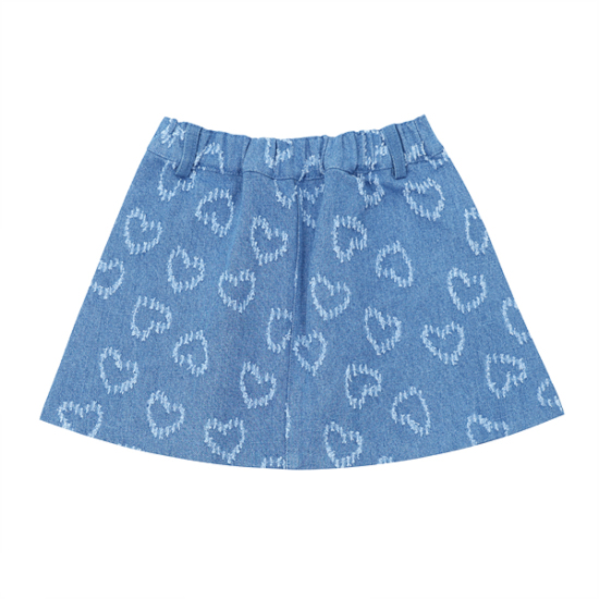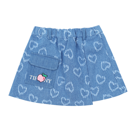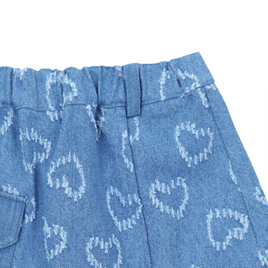 상세설명-블루데님 표면에 하트자갸드가 놓여진 원단으로 작업한 데님 SK입니다. 오비에는 전체통밴드 처리되어,