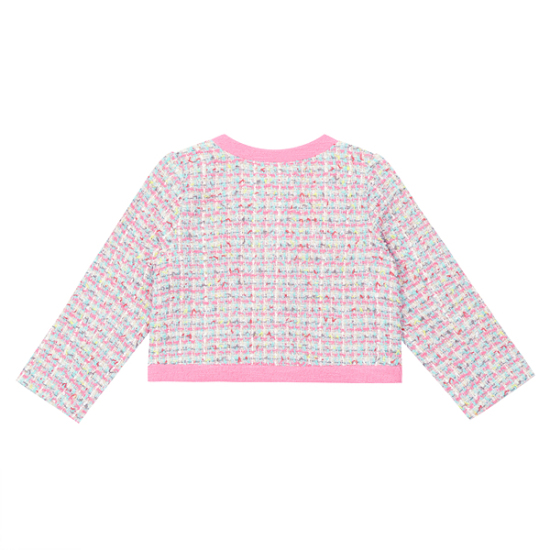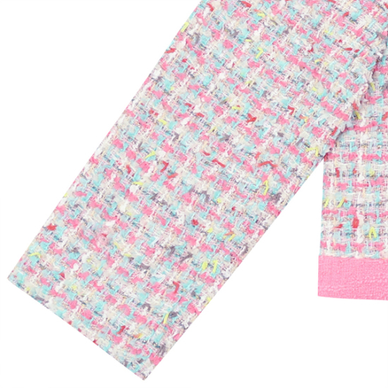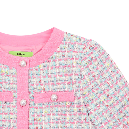 상품설명-고급스러운 컬러가 믹스된 트위드로 제작된 핑크 트위드 크롭 자켓입니다. 진주와 골드 장식으로 마무리하여 고급스러운 느낌을 줍니다. 블라우스 외에도 후드맨투맨이나 티셔츠와 코디하여도 유니크하게 연출할 수 있습니다. 같은라인의 T44KCS010 PK 펄 트위드 SK와 코디하면 러블리하게 코디할 수 있습니다.