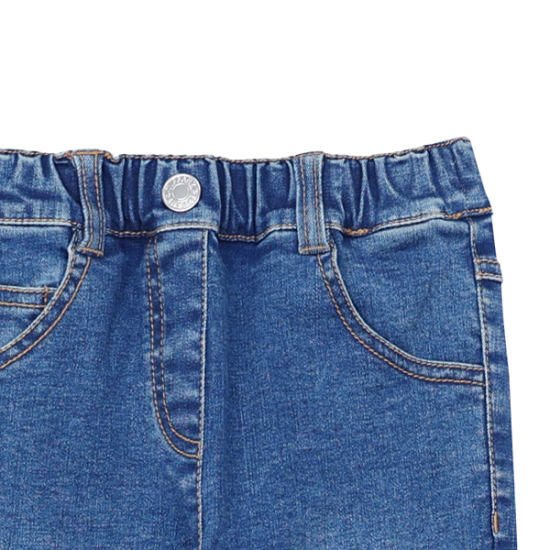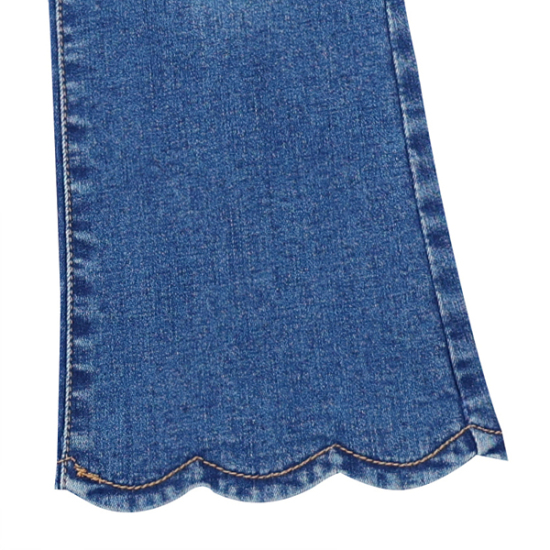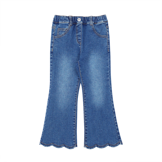 상품설명-스판성이 좋은 데님으로 제작한 데님 PT입니다. 밑단이 스칼럽모양으로 잡혀있어 귀여운 느낌을 줍니다. 오비에는 전체 통밴드 처리되어 착용하기 편리합니다. 같은 라인의 트위드 자켓과 코디하면 멋스럽게 연출 가능합니다.
