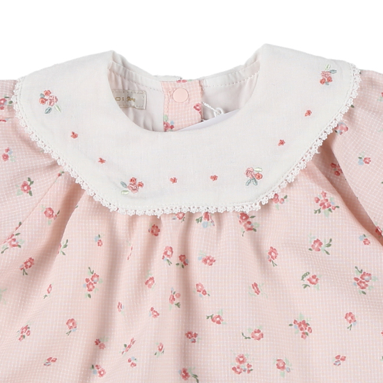 플라워 나염과 카라부분에 자수를 넣어 귀엽고 사랑스럽게 표현한