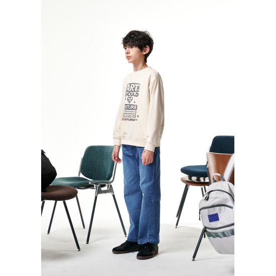 에그옐로우 컬러가 화사한 맨투맨입니다. 암홀에서 어깨로 올라가는 유동적인 사선 라인이 입었을 때 멋스럽고 트렌디하게 만들어주는 아이템입니다. 블루테일만의 아트포스터를 연상시키는 레터링을 빈티지하게 나염을 찍어 포인트를 준 상품입니다.