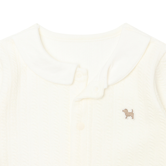외출복으로도 손색없으며 카라스타일과 강아지 자수로 포인트를 주었습니다.
