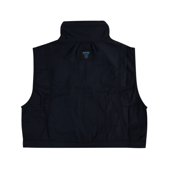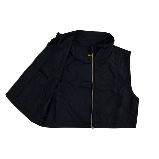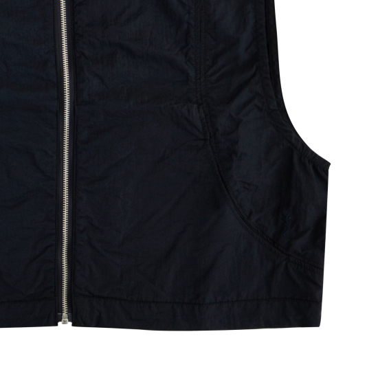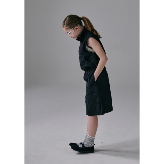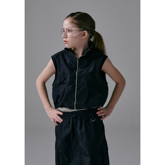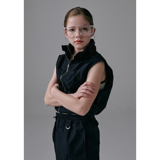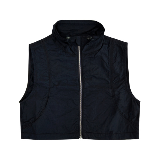 샤이니한 네이비 컬러로 제안한 크롭 기장의 하이넥 베스트입니다. 스포티한 곡선 절개에 숨겨진 포켓 디테일이 있어 기능성 있고 넥과 밑단 안쪽 스트링이 있어 에어리하면서 트렌디한 크랍 기장을 연출할 수 있는 아이템입니다. 동일한 소재의 화섬 스커트와 함께 트렌디한 셋업 코디를 연출할 수 있습니다.