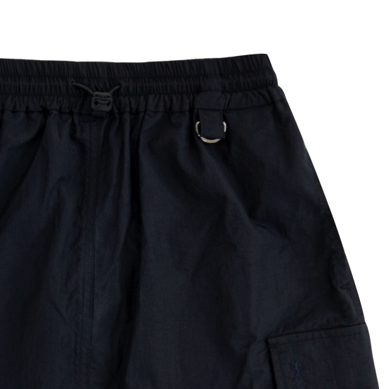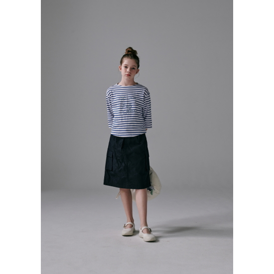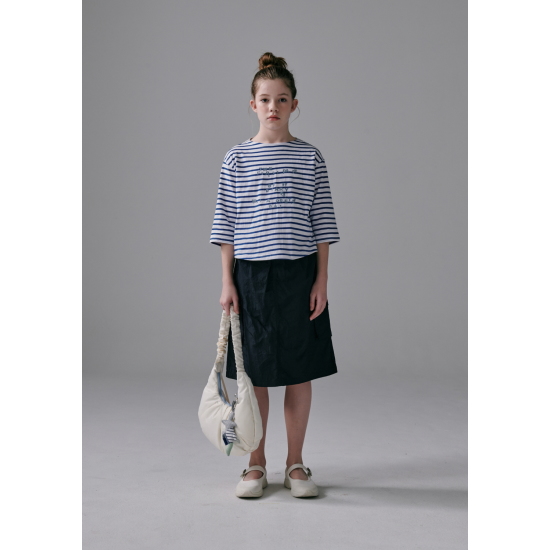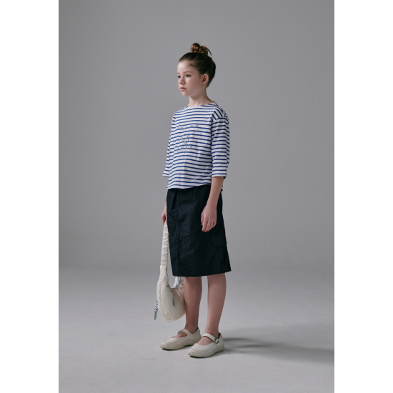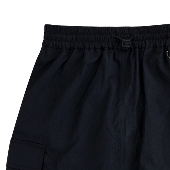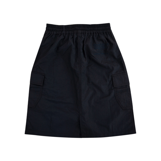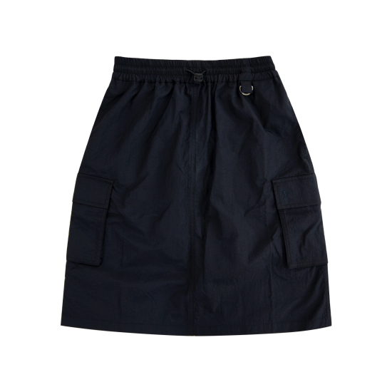 통고무줄로 제안한 미드 기장의 파라슈트 스커트입니다. 같은 소재로 제안한 크롭 베스트와 함께 탑적인 코디를 제안할 수 있는 상품입니다. 스트링으로 허리를 조절할 수 있고 언발란스 카고포켓이 매력적인 상품입니다.