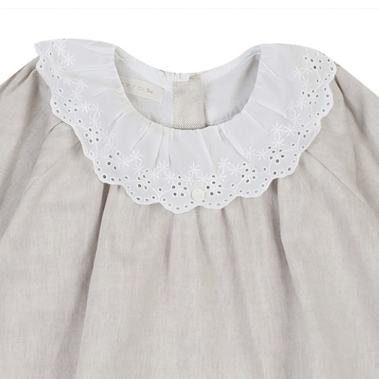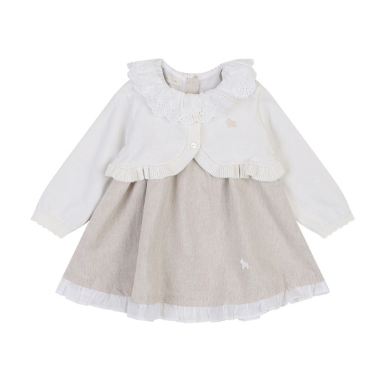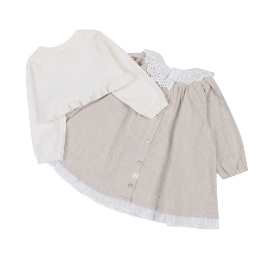 고급스러운 베이지 컬러에 레이스 카라로 포인트를준 사랑스러운 유아 원피스 세트 짧은 볼레로 느낌의 니트 가디건 세트 구성으로 세련된 스타일 입니다.봄의 러블리한 느낌의 선물하기에도 좋은 상품 입니다. 배송메세지란에 메모를 남기시면 선물포장 됩니다.