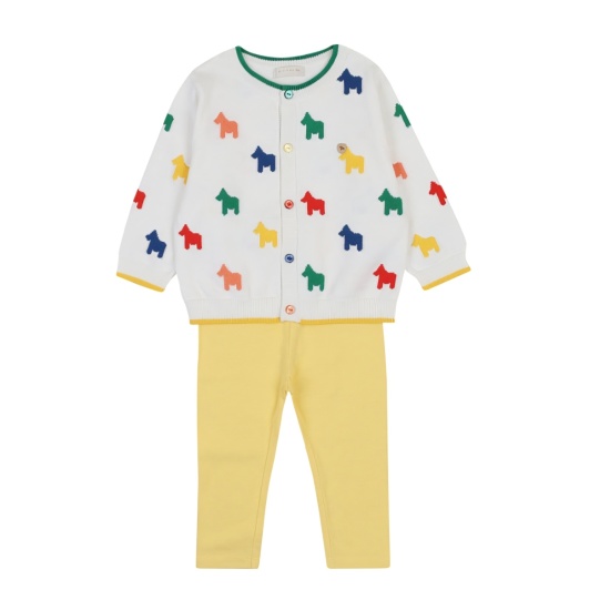 화사한 컬러감이 돋보이는 유아 봄 간절기 상하복귀여운 멀티 말 자가드 니트 가디건과 스판이 부드러운 면 바지 세트 구성으로 포근한 봄 계절에 착용하기 좋은 상품입니다. 배송메세지란에 메모를 남기시면 선물포장 됩니다.