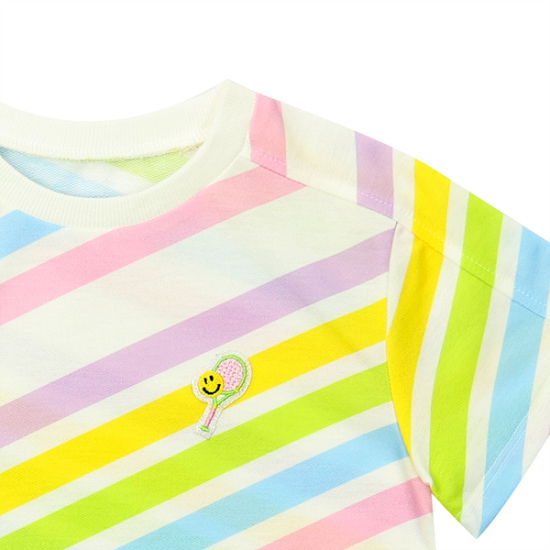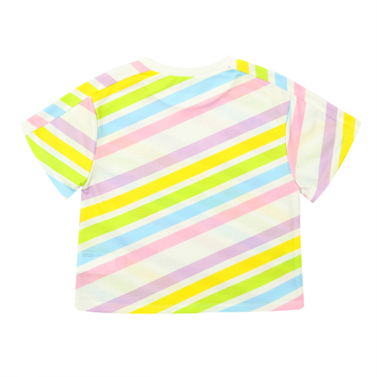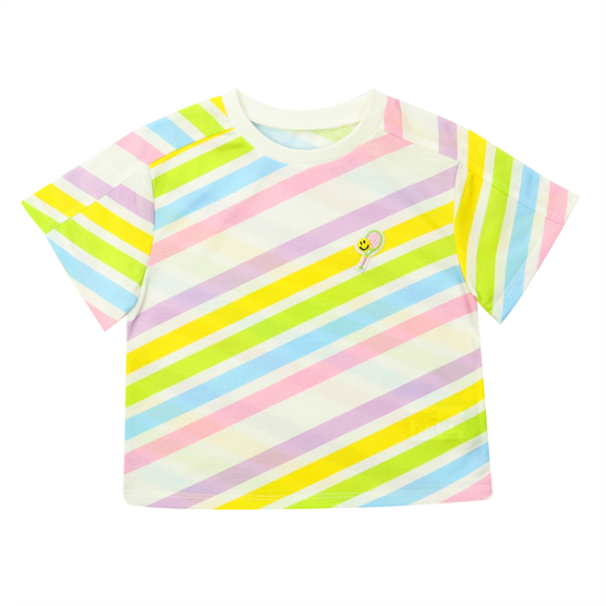 상세설명-무지개패턴의 라운드 티셔츠로 어디에나 코디가능하게 입을수있는 아이템입니다.
