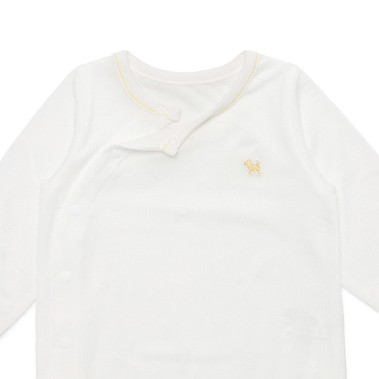 블루독베이비의 대표 캐릭터 구름 강아지와 B로고가 들어간 자가드 원단에 강아지 자수로 포인트를 주었습니다