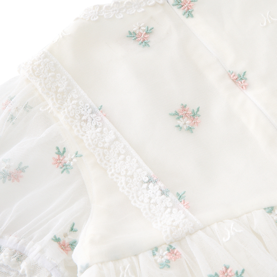 퓨어한 아이보리 컬러의 뮤프리미엄 전판 자수 드레스 입니다.
