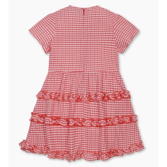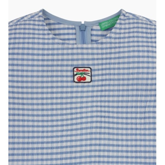 가볍고 시원한 시어서커 깅엄체크 소재로 제안된 원피스.