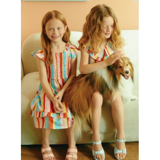 비비드한 컬러감이 매력적인 스트라이프 원피스.