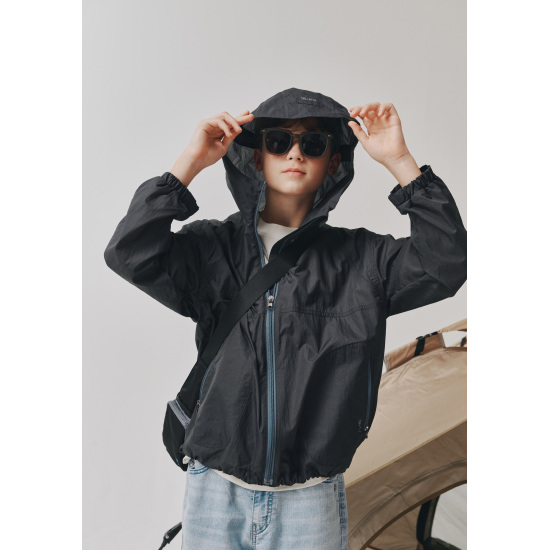 다크한 차콜그레이 컬러가 고프코어 룩에 제격인 경량 소재의 립스탑 윈드브레이커 점퍼입니다. 후드 뒤쪽 스트링 부분에 컬러를 사용해 포인트를 주었고 앞, 뒤 몸판에 곡선 절개를 넣어 입었을 때 힙한 연출이 가능합니다. 약간의 사선 지퍼 포켓으로 수납이 용이하게 제안하였습니다. 밑단에 엘라스트링이 있어 핏을 조절하여 연출하기 좋은 상품입니다.