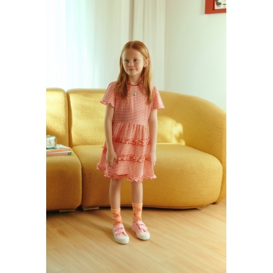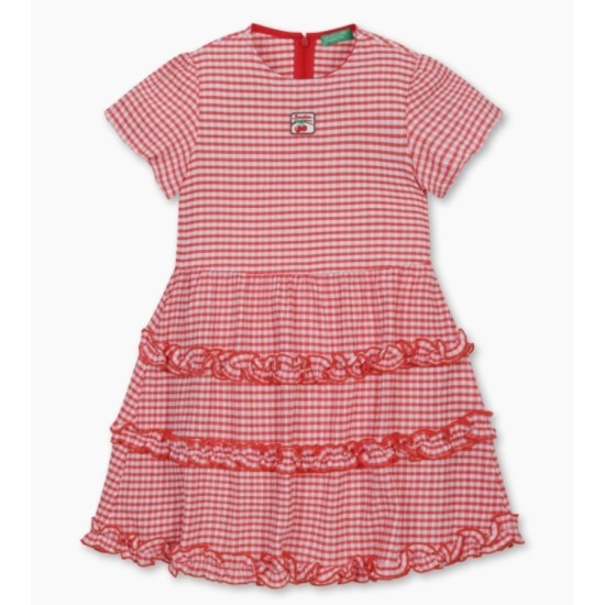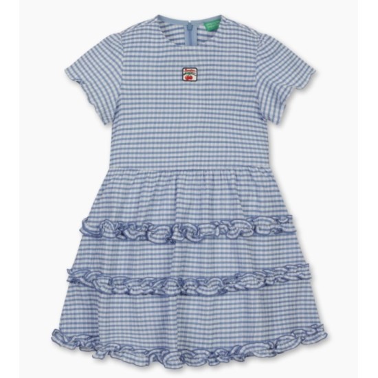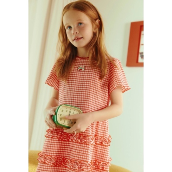 가볍고 시원한 시어서커 깅엄체크 소재로 제안된 원피스.