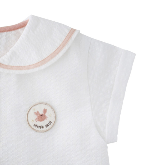 아기자기한 와펜 포인트와 컬러 테이프를 활용하여 세일러 카라로 귀여 움을 한 껏 더했습니다.