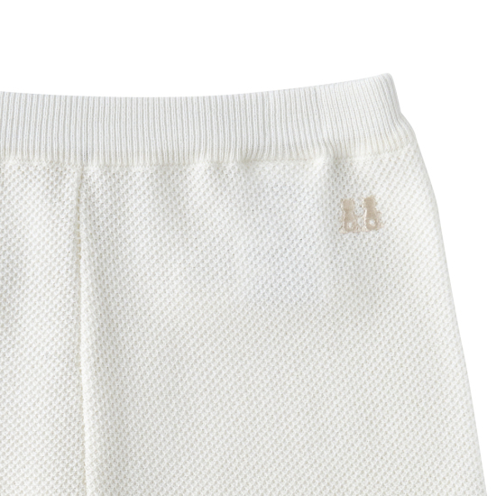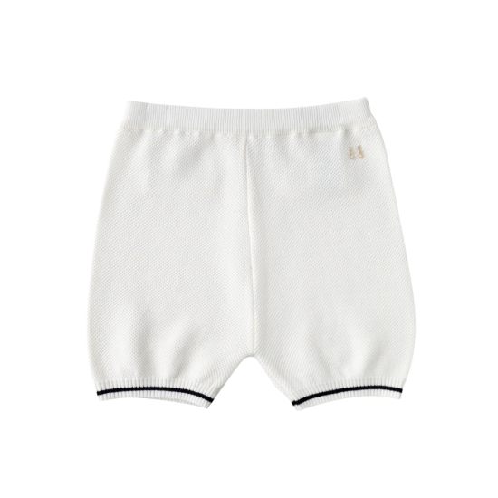 소프트한 아이보리 컬러감에 블랙 컬러팁이 포인트인 썸머 니트 쇼츠입 니다.