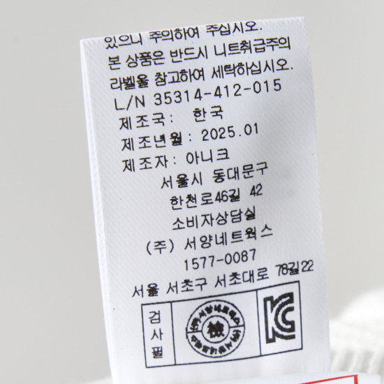 니트 소재 특성상 손세탁 또는 망에 넣어 울세탁 권장합니다.
