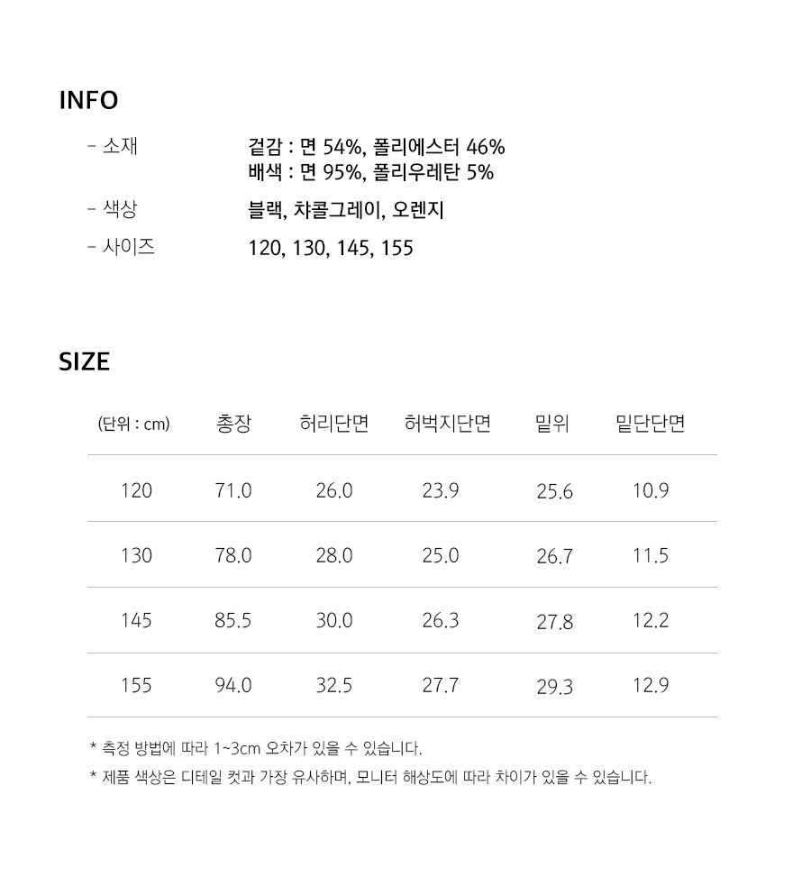 허리와 밑단 밴딩 처리되어 착용감이 편하며 활동성이 좋습니다.