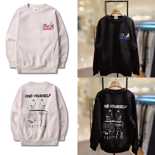 루즈핏 맨투맨으로 다양한 연출이 가능하며 가슴에 지프 로고 자수를 더해 고급스러움을 더했습니다.