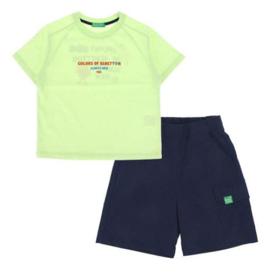 레귤러 핏라인의 반팔 티셔츠와 카고 팬츠 세트 구성.