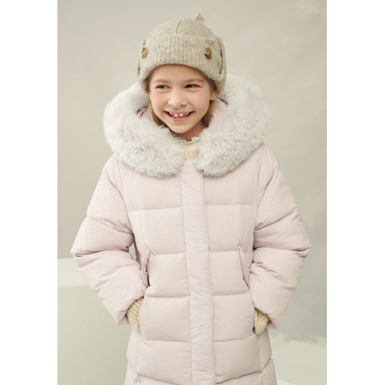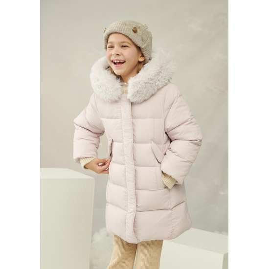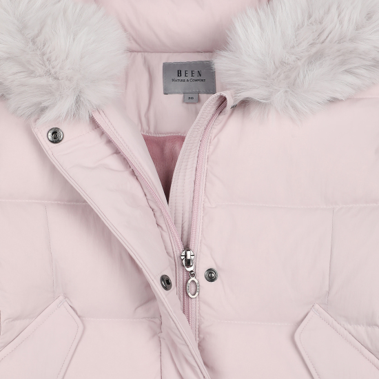 점퍼 아이템입니다. 톤온톤 핑크그레이 컬러의 탈부착 퍼 트리밍이
