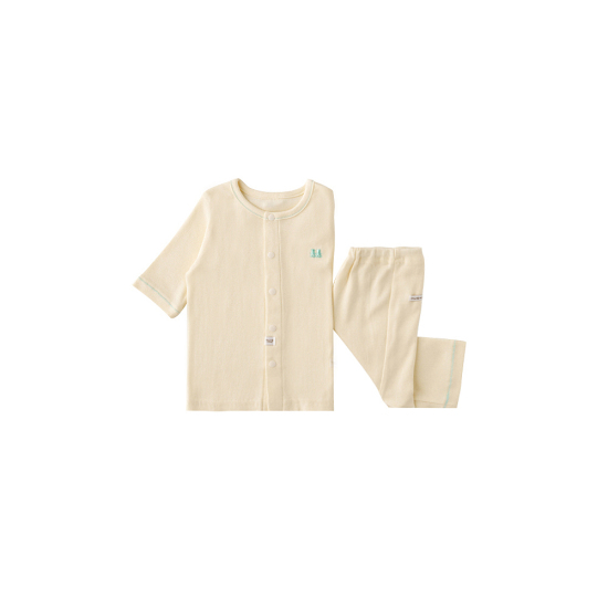 COZY COTTON라인의 7부 내의 아이템입니다. 너도 밤나무를 원료로 만든 친환경 섬유인 모달 코튼원사를 신축성이 좋은 후라이스 원단입니다. 활동량이 많고 더위를 많이 타는 아이들에게 편안한 착용감을 주며 통기성이 매우 탁월합니다. 소프트한 옐로우 컬러 내의에 밍크뮤로고 자수를 포인트로 준 디자인으로 아기들에게 선물하기 용이한 아이템입니다.