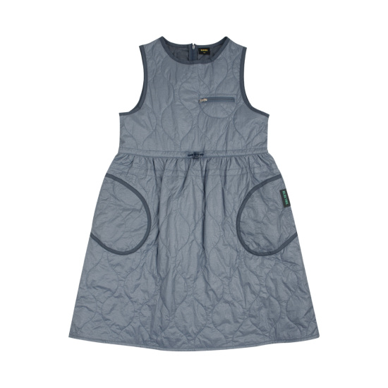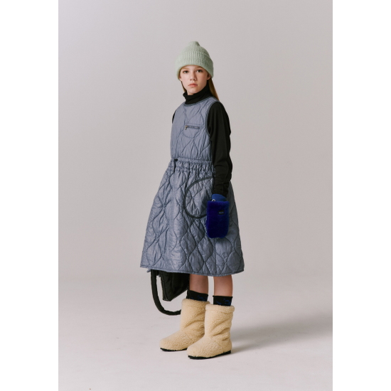 빈티지한 광택감이 있는 나일론 소재로 만든 퀼팅 원피스입니다. 슬리브리스 디자인으로 풀오버(AXH2TS01, 02, 03)에 레이어링하여 입는 것을 추천합니다. 톤온톤의 그레이 컬러 배색 원단을 사용하여 포인트를 주었으며 허리 스트링을 조여 드라마틱한 라인으로 여성스럽게 입을 수 있는 디자인입니다. 전체 2oz 퀼팅 처리 되어 있습니다.