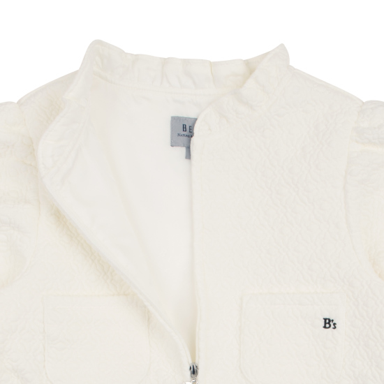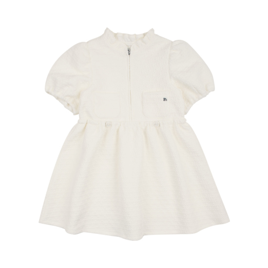 아이보리 컬러의 다이마루 퀼팅 소재 원피스 아이템입니다. 반오픈 지퍼 여밈으로 안에 풀오버 등의 이너를 함께 입고 세련된 스타일링을 제안할 수 있는 반소매 기장의 유니크한 아이템입니다. 사랑스러운 실루엣을 보여주는 아이템으로 허리라인의 스트링을 잡아주어 다양한 연출할 수 있습니다.
