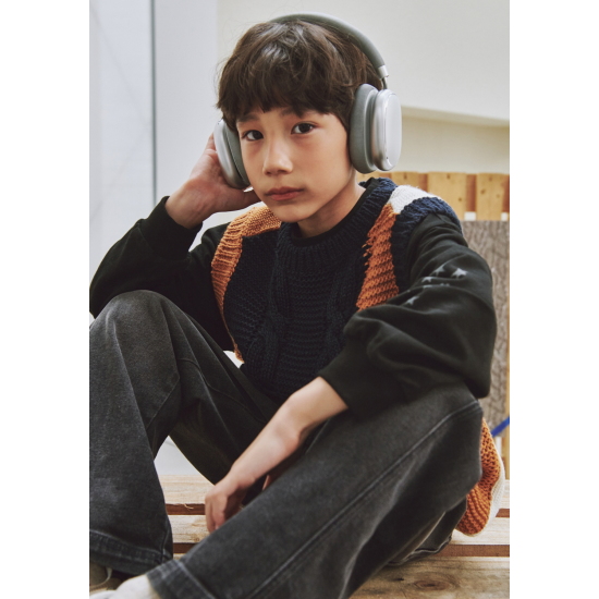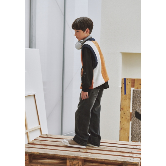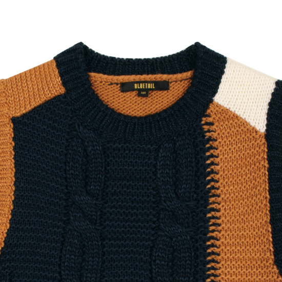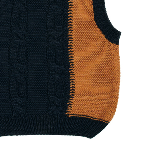 케이블 믹스 컬러블러킹 니트베스트입니다.