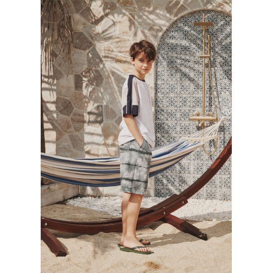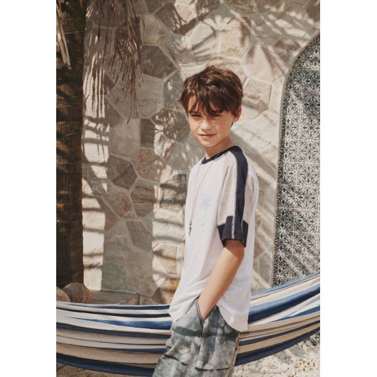 (롯데백화점)나염 프린팅 컬러 블럭 화이트 반팔 티셔츠AZC3TS01WT