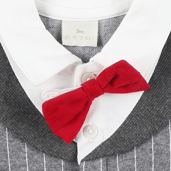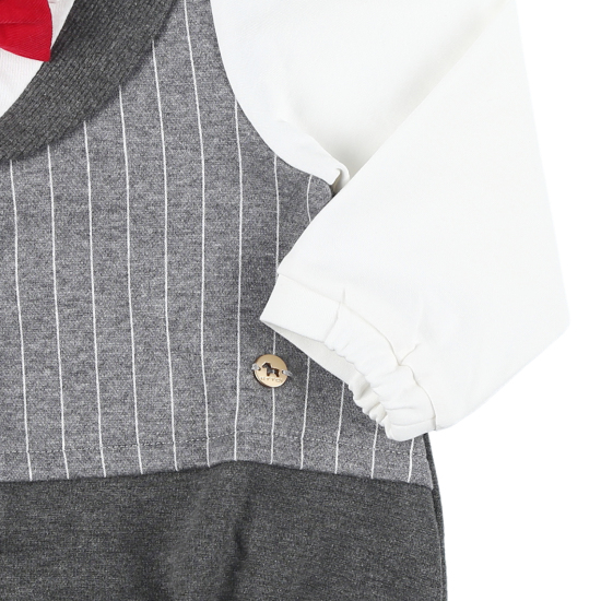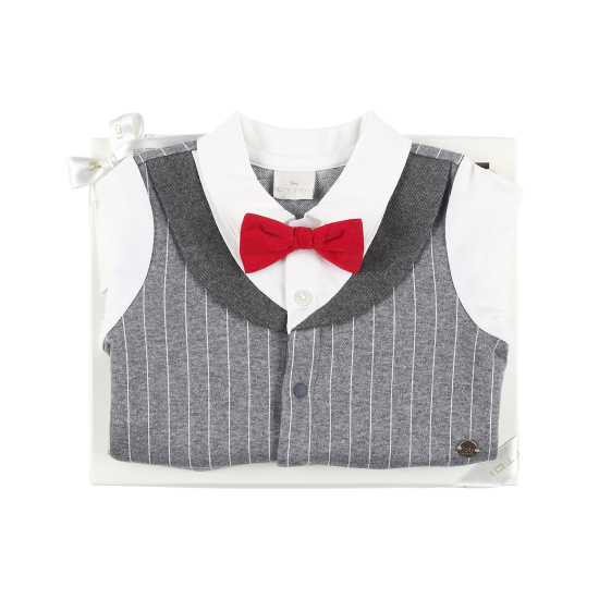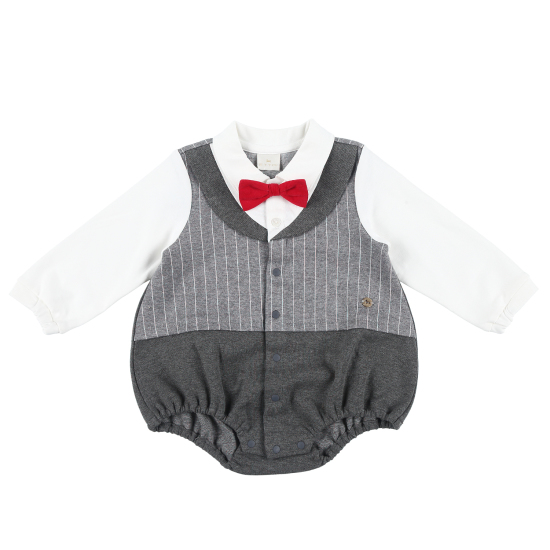 고급스러운 다이마루 쟈가드 소재와조끼를 덧입은 듯한 디테일이 멋스러운 바디수트레드 컬러 타이를 포인트 주어 귀여운 신사 느낌의 유아 바디수트 입니다.특별한 기념일& 세련된 스타일로 편안하게 착용하기 좋은 상품입니다. 배송메세지란에 메모를 남기시면 선물포장 됩니다.