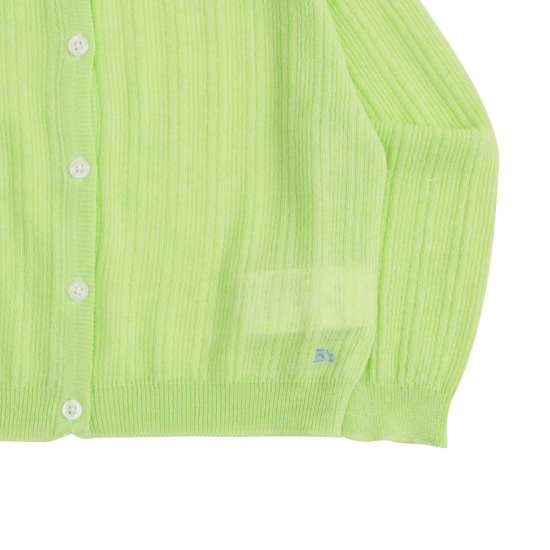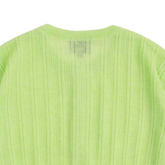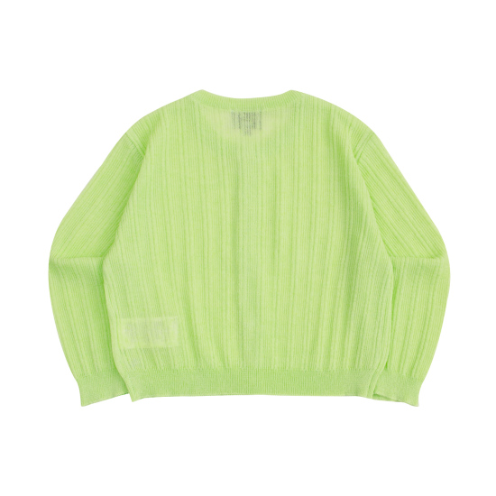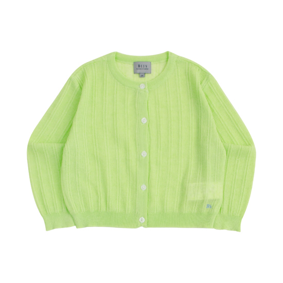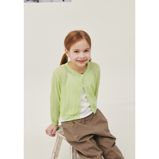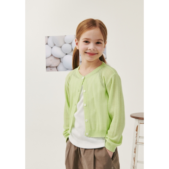 산뜻하고 생기있는 그린 컬러로 스타일링에 포인트를 줄 수 있는 가벼운 니트 가디건입니다. 스카시 조직을 세로 골 조직으로 가볍고 얇게 제안하여 네츄럴하면서도 시원해 보이는 스타일로 제안하였습니다. 슬리브리스 티셔츠와 함께 시어한 느낌으로 스타일링 하거나, 여름시즌 제안되는 원피스들과 함께 다양하게 제안하여도 좋은 아이템입니다.