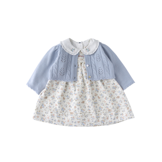 소프트한 블루 컬러의 니트가디건SET드레스입니다. 포근한 면 혼방 니트 가디건과 플라워 나염 우븐 드레스를 세트로 구성하여 활용성을 더한 아이템입니다. 가디건의 경우 니트 소재 특성상 손세탁 또는 망에 넣어 울세탁 권장합니다.