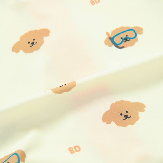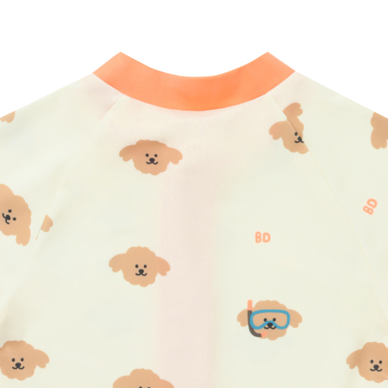 블루독베이비의 시그니처 도기를 사용한 패턴 올인원 수영복 입니다.
