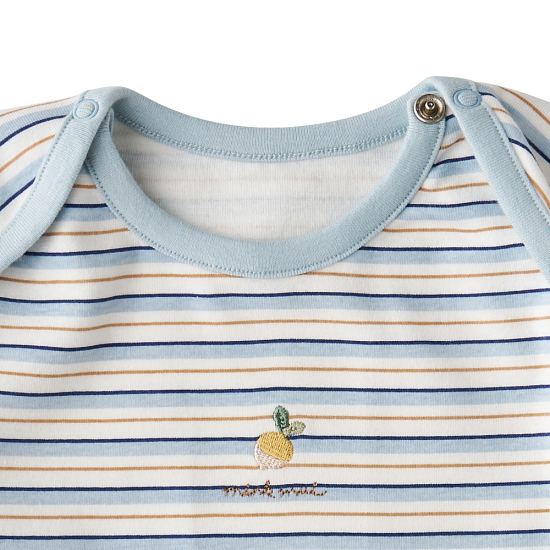 상의 앞중심에 귀여운 비트 자수 를 포인트를 준 디자인으로 아기들에게 선물용으로 구성하기 좋은 아이 템 입니다.