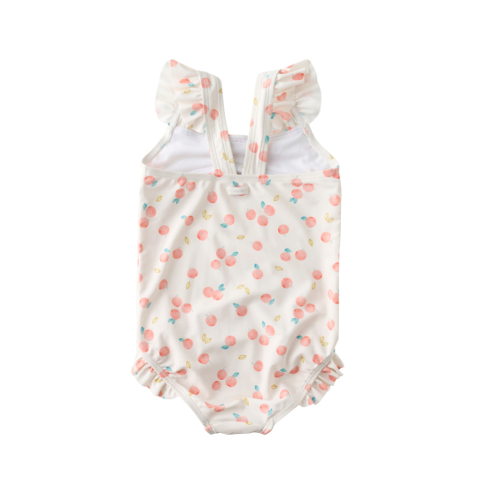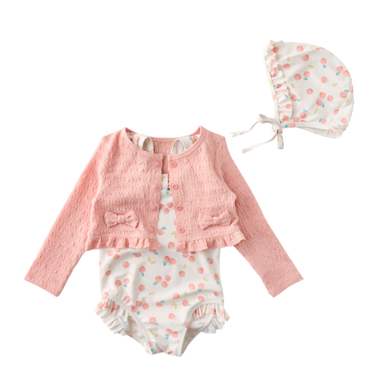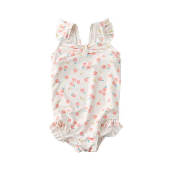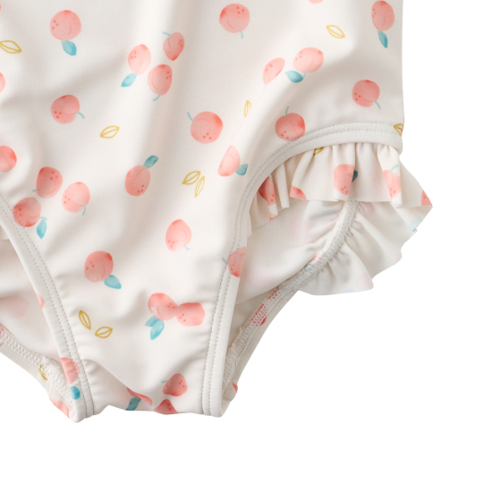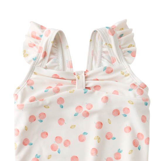오렌지 칼라감의 쁘띠오렌지 패턴 수영복과 따뜻한 체온을 유지할 수 있는