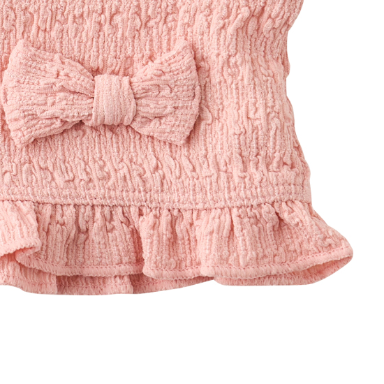 화사한 오렌지 주름지 소재 가디건을 세트로 제안한 뉴 아이템입니다