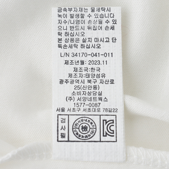 품질경영 촉 진법에 의한 품질 표시를 꼭 참조하여 세탁하십시오.