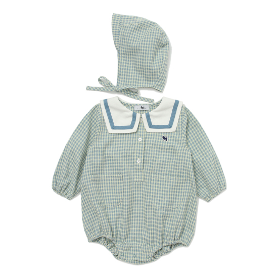 세일러카라 디자인의 바디수트 세트입니다.두껍지 않은 우 븐 소재로 가볍게 착용가능합니다. 세일러 카라디자인이 매