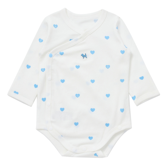 COZY COTTON 라인의 배내 바디수트 입니다. 청정 자연의 대나무를 원료로 만들어진 친환경적인 뱀부사와 면사를 사용해