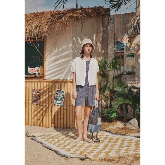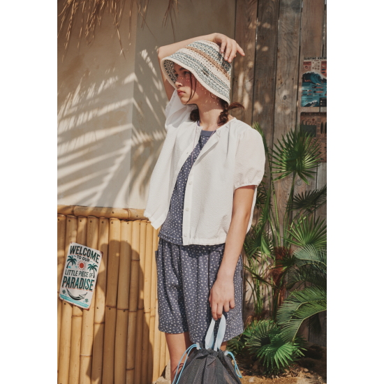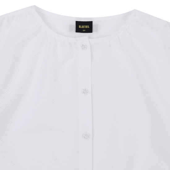 가슬거리는 우븐으로 제안한 화이트 라운드넥 블라우스입니다. 넥과 어깨에 미세한 셔링을 주어 자연스런 볼륨감이 매력적인 상품입니다. 밑단 안쪽 주원단 랍빠 스트링을 넣어 귀여운 볼륨감을 주었고, 부담스럽지 않은 소매 볼륨이 착용했을 때 핏이 더 예쁜 상품입니다. 여행지에서 데님 쇼츠와 단독으로 코디하거나 해변에서 슬리브리스나 수영복 위에 걸치기 좋습니다.