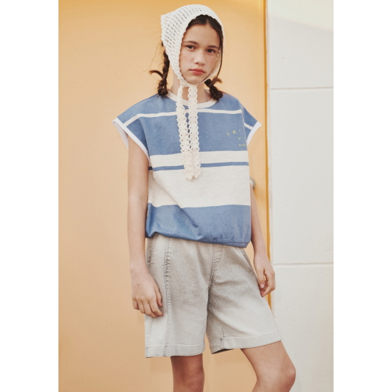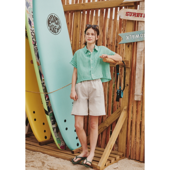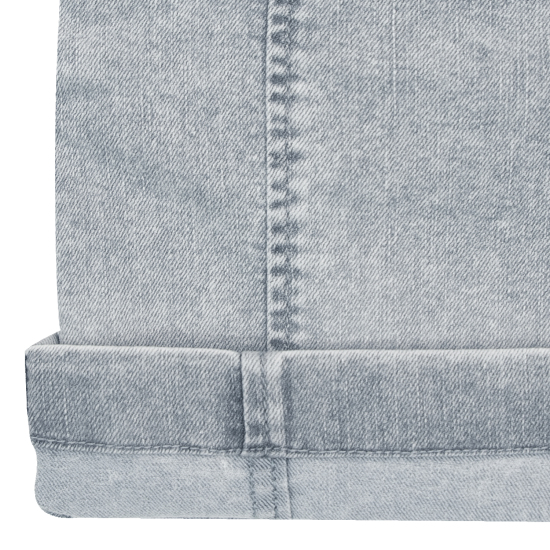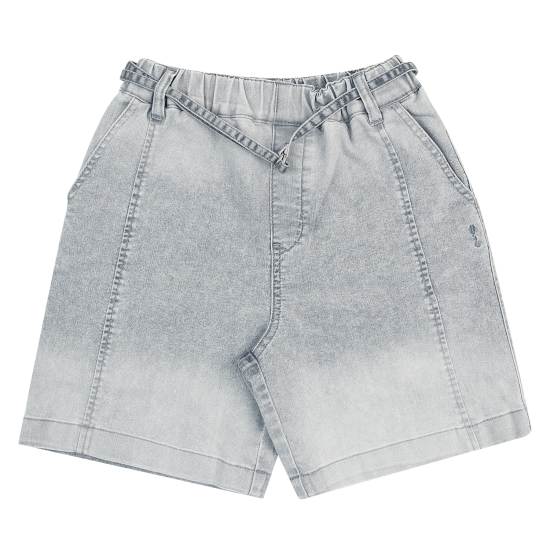 통고무줄로 제안한 라이트그레이 컬러 데님 반바지입니다. 스노우 워싱의 그라데이션된 컬러감으로 시원한 느낌을 주며, 풍성한 실루엣을 연출하여 다리가 날씬해 보이도록 앞쪽에 절개선을 주었습니다. 제원단 벨트를 함께 착용하여 포인트를 줄 수 있는 상품입니다.