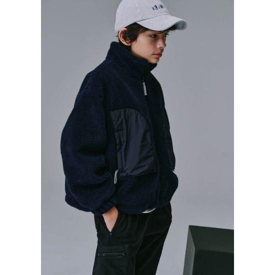 네이비 컬러의 헤어리한 보아로 제안한 하이넥 점퍼입니다. 라운드 모양의 입체적인 지퍼 포켓으로 스트릿한 아웃도어 느낌을 가미했습니다. 소매는 밴드를 넣어 자연스럽게 모아지게 하였고 몸판 밑단 안쪽은 엘라스트링으로 좀더 프로텍티브한 핏을 연출할 수 있습니다.